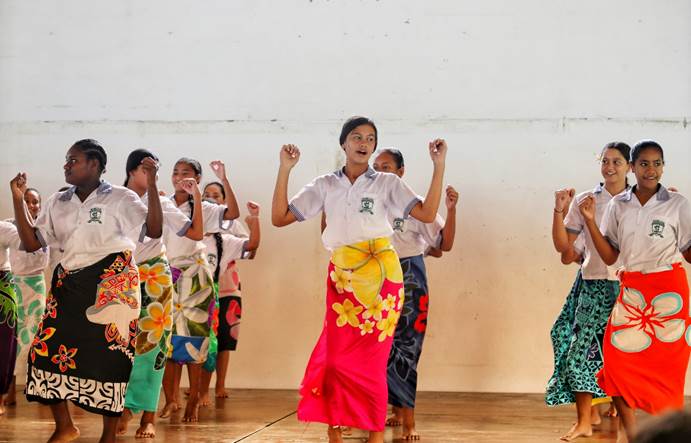 阿皮尼考学校师生以当地传统仪式欢迎艺术团成员