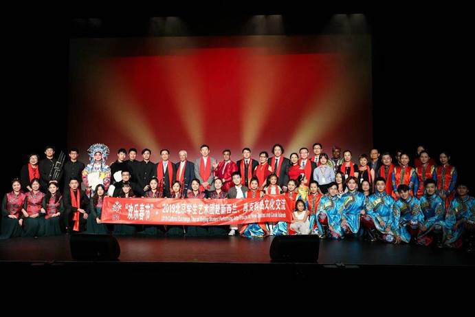 2月10日至18日,由北京市教育委员会支持,我校学生艺术团一行赴新西兰、库克群岛等地交流演出,作为我国2019年“欢乐春节”系列活动,为海外观众呈上中国民族器乐演奏、舞蹈、武术、戏曲等多种形式的表演。此次出访演出历经10天,覆盖两国三地,包括3场大型专场演出、4场交流演出,共有约5000名海外观众欣赏到了来自中国的精彩表演,体会到璀璨多彩的中华文化,点亮海外“欢乐春节”。