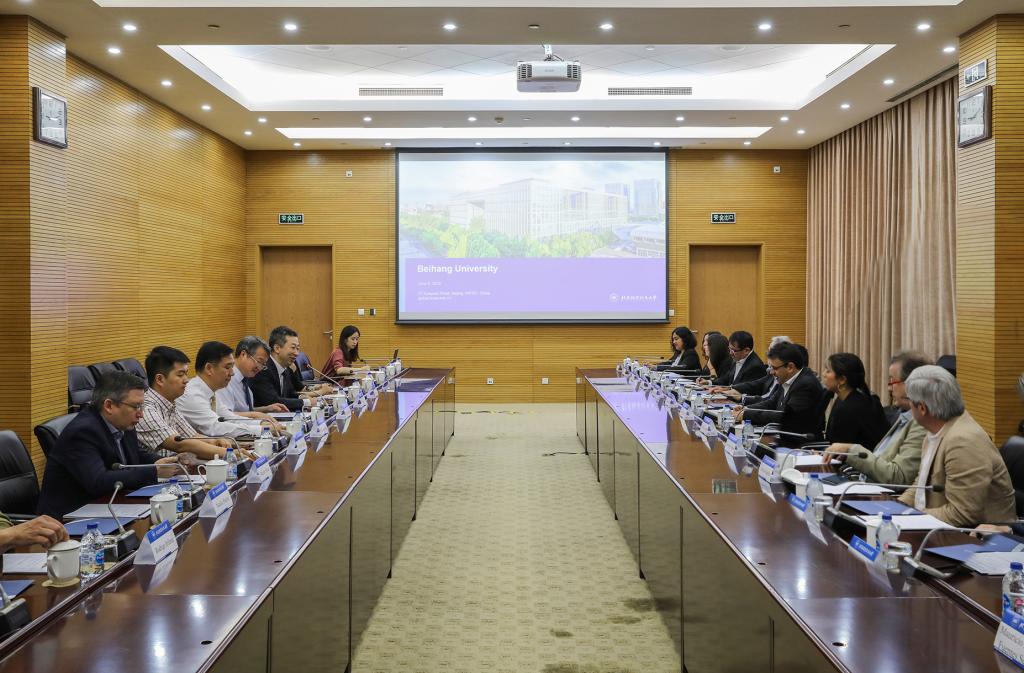 代表团一行还参观了我校中法工程师学院与联合国附属空间科学与技术教育亚太区域中心(中国),并与我校计算机、生物医学工程、医学、环境、能源等领域教授进行分组交流。