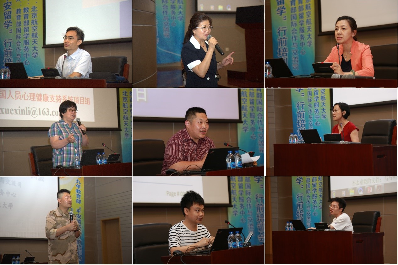 在上午的培训中,外交部领事保护中心杨舒参赞介绍了海外公共安全形势和我国领事保护相关知识;德威集团安保教官付俊峰、金鸽现场演示了地震、火灾、枪击、爆炸以及公共场所踩踏等突发事件的应对方法;海淀教育中心心理教师何燕讲解了如何有效调节留学期间的抑郁、焦虑等负面情绪。在下午的培训中,北航学生处副处长田原围绕留学人员身份归属、中国的国情特色和中华民族文化内核等,对留学人员可能遇到的问题进行了深入讲解;教育部留学服务中心丁莉处长系统讲解了国家公派留学服务体系和公派留学派出手续办理流程及相关要求;中信银行总行郑轶颖经理详细介绍了防范金融电信诈骗和出国留学金融服务等方面的知识;北航航空科学与工程学院博士生王霁翔、计算机学院博士生陈勇先后分享了在美国、英国联合培养期间的学习生活经验。