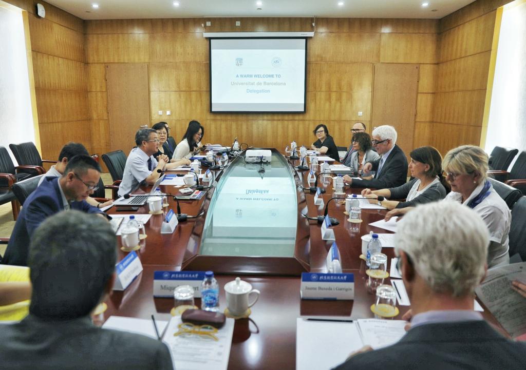 6月27日上午,西班牙巴塞罗那大学外事副校长Alex Aguilar教授、亚洲事务代表Àngels Pelegrín Solé教授以及该校生物学院、经济企业管理学院、教育学院副院长等一行9人访问我校。我校副校长黄海军在新主楼会议中心第四会议室会见来宾,国际交流合作处、经济管理学院、人文社会科学学院、新媒体艺术与设计学院、化学学院等单位代表出席会见。