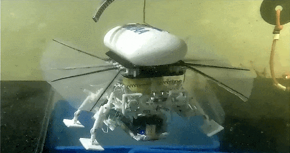 “10000米深海压强对于小机器人来说,相当于压了一座小型冰山”,北航研究团队负责人文力教授的比喻,生动地揭示了深海小机器人在研发过程中面临的最大难题之一。在深海的高压下,柔性驱动器材料的模量增加,类似肌肉的“僵化”,会导致驱动幅值与速度的衰减,削弱机器人的运行性能。为了克服这一挑战,在多次尝试之后,研究团队设计出了全新的深海驱动装置:利用双稳态手性超材料结构在两个稳态之间切换时的快速突跳(snap-through),实现高效驱动。这种快速突跳的速度和幅度会随着结构材料模量的增加而增加,巧妙地将深海高压对软材料的负面影响扭转为正面影响,从而“化腐朽为神奇”,成为提升机器人驱动性能的助力,克服了以往柔性材料驱动器在深海环境下性能衰减的困难,使得机器人在深海中能够实现更高的驱动速度和幅度,如同深海中的“风火轮”,在压力中释放出惊人的动力。