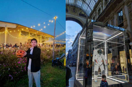 左图:万圣节派对托举南瓜灯右图:米兰埃马努埃莱二世长廊