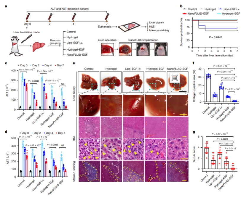 图2. NanoFLUID实现急性创伤性肝损伤高效修复